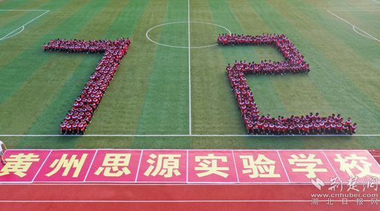 學(xué)生們擺出“中國”“72”等字樣,向祖國獻(xiàn)禮。通訊員 供圖
