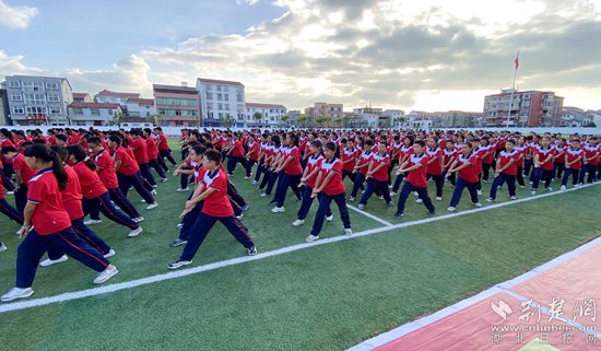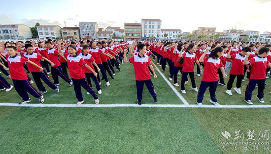 9月29日下午,黃州區(qū)思源實(shí)驗(yàn)學(xué)校七年級(jí)的500余名學(xué)生進(jìn)行團(tuán)體操展演。通訊員 供圖