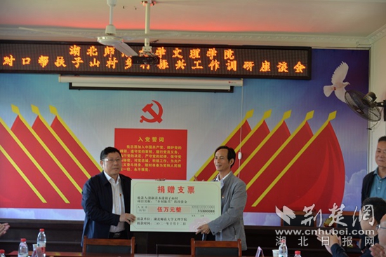 湖北師范大學(xué)文理學(xué)院常務(wù)副院長(zhǎng)楊學(xué)斌代表學(xué)院向木港鎮(zhèn)子山村捐贈(zèng)5萬(wàn)元鄉(xiāng)村振興建設(shè)資金。