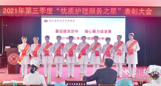 對(duì)10名“優(yōu)質(zhì)護(hù)理服務(wù)之星”獲得者進(jìn)行表彰。通訊員供圖