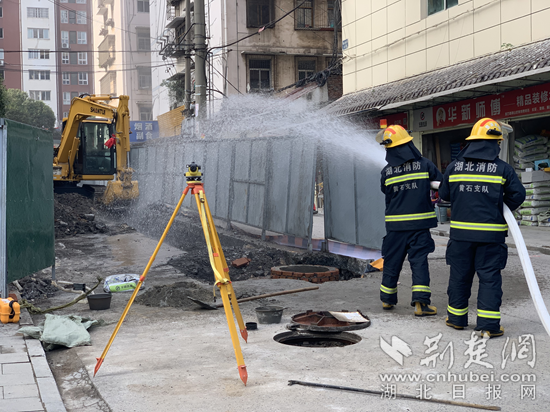 荊楚網(wǎng)(湖北日報網(wǎng))訊(通訊員張敏、盧永強)10月24日上午,黃石西塞山區(qū)青龍閣山水佳緣小區(qū)門前,挖掘機師傅在改造下水管道施工過程中,不慎挖破天然氣管道,導致天然氣持續(xù)泄露。所幸消防員和燃氣公司技術人員緊急到場,未造成更大影響。