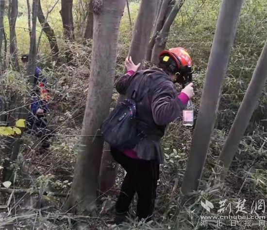經(jīng)過近3個小時的搜救,救援隊員終于在山頂處聽到了母子兩人的呼喊聲,大家循聲找去,在密林深處找到了被困的母子倆。