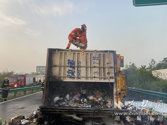 事故未造成人員傷亡,但造成道路通行中斷,擁堵路段長達(dá)5公里左右。接到險(xiǎn)情后,消防、高速公安、路政等部門到場迅速展開救援。據(jù)駕駛員介紹,此車是從鄂州葛店開往黃石下陸,貨廂內(nèi)裝載的都是快遞件。目前,事故損失還在清理核實(shí)中。