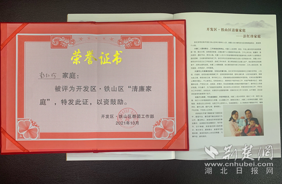 荊楚網(wǎng)(湖北日報網(wǎng))訊(通訊員 黃月華)11月1日,黃石經(jīng)濟技術開發(fā)區(qū)·鐵山區(qū)審計局傳來喜訊,在該區(qū)“清廉家庭”評選活動中,該局干部彭紅珍家庭榮獲“清廉家庭”榮譽稱號。