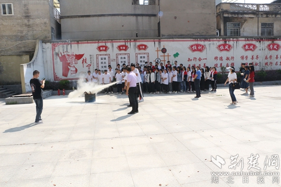 傳授干粉滅火器的使用方法。通訊員 供圖