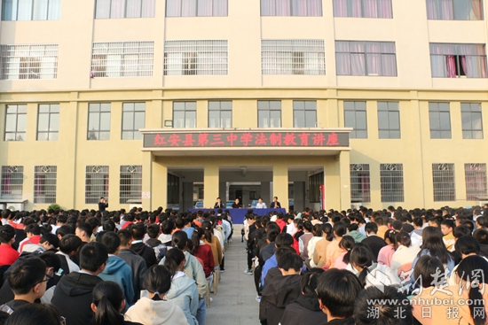 “法網(wǎng)恢恢,疏而不漏,打架斗毆、網(wǎng)絡(luò)詐騙等這些行為會受到法律的制裁,還會影響個人的聲譽(yù)……” 10月28日,紅安三中在該校實(shí)驗(yàn)樓開展法制安全教育講座,該校高一、高二年級師生參加活動。