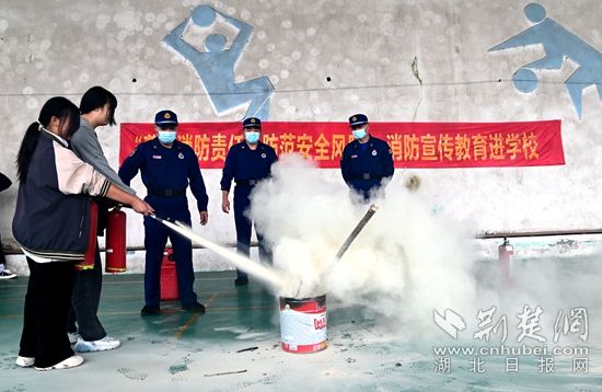 隨后,圍繞校園火災(zāi)特點(diǎn)和危害,消防人員采用簡(jiǎn)潔易懂的語(yǔ)言就火災(zāi)危害性、校園防火注意事項(xiàng)及如何正確撥打“119”報(bào)警電話、如何在火場(chǎng)中逃生和自救等消防安全常識(shí)進(jìn)行了講解,并手把手教學(xué)生操作使用滅火器撲滅初起火災(zāi),現(xiàn)場(chǎng)學(xué)習(xí)氛圍十分濃厚。