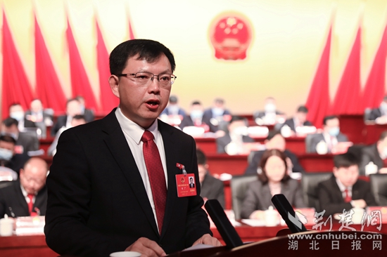 紅安縣委副書記、代理縣長胡廣作《政府工作報(bào)告》。汪冠 攝