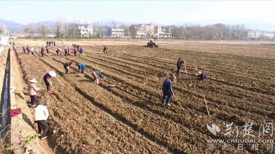 荊楚網(wǎng)(湖北日?qǐng)?bào)網(wǎng))訊(通訊員 曹聰 呂雷 陳鈺)11月9日,蘄春縣漕河鎮(zhèn)劉榜村“艾師傅”蘄艾種植基地里,艾農(nóng)們正在平整土地,用耙子進(jìn)行蘄艾根出根,按照蘄艾標(biāo)準(zhǔn)化種植技術(shù)規(guī)程,分片種植蘄艾。