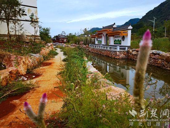 村莊漫步,紫薇、櫻桃、枇杷,園園相連;桂、茶、菊、櫻,四時(shí)花開;特色文化墻造型生動(dòng);環(huán)水渠清澈見底;景觀園長廊彩繪精美。