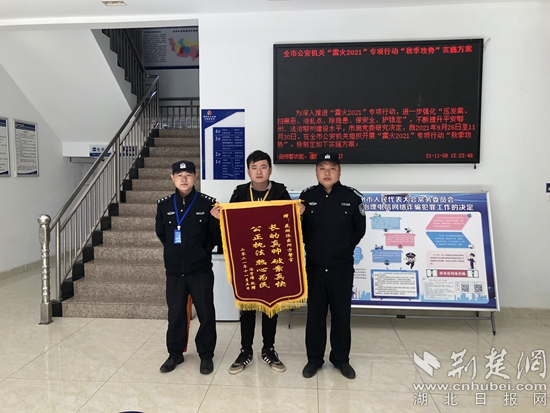 “謝謝你們及時(shí)破案……”退贓現(xiàn)場(chǎng),另一輛摩托車(chē)車(chē)主馮某鄭重地將一面錦旗送到辦案民警手中。
