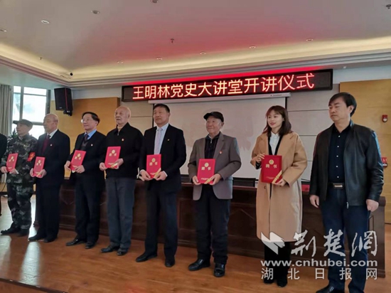 開講儀式上,黃石港區(qū)有關領導向王明林黨史大講堂宣講團成員頒發(fā)了聘書。王明林主講了第一課,內容為中共一大到十九大精神。