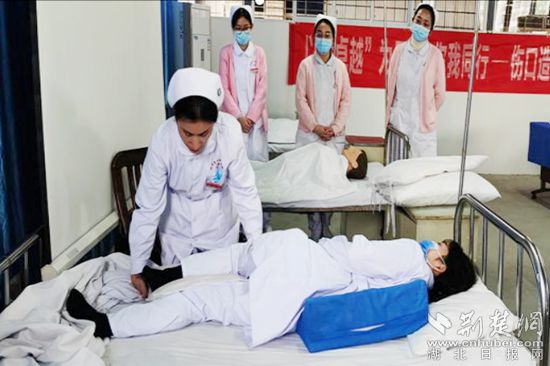 她采用真人實(shí)操進(jìn)行現(xiàn)場(chǎng)良姿位的擺放,例如:患者一側(cè)肢體偏癱如何協(xié)助左右翻身、單人搬運(yùn)到輪椅,使頭身足處于功能體位、避免肢體受壓、預(yù)防墜床及跌倒等專(zhuān)科知識(shí)。
