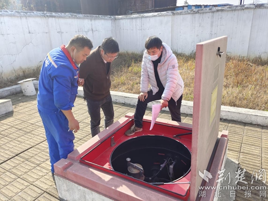 下陸區(qū)應急局聯(lián)合專家對中石化岳家灣加油站油罐區(qū)進行安全檢查。通訊員供圖