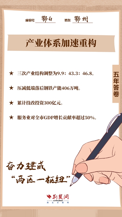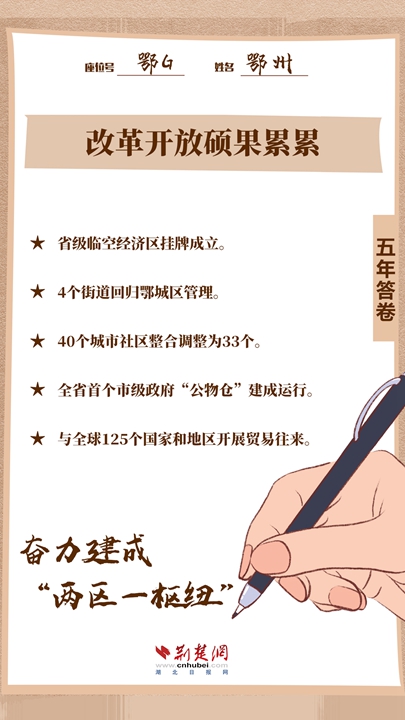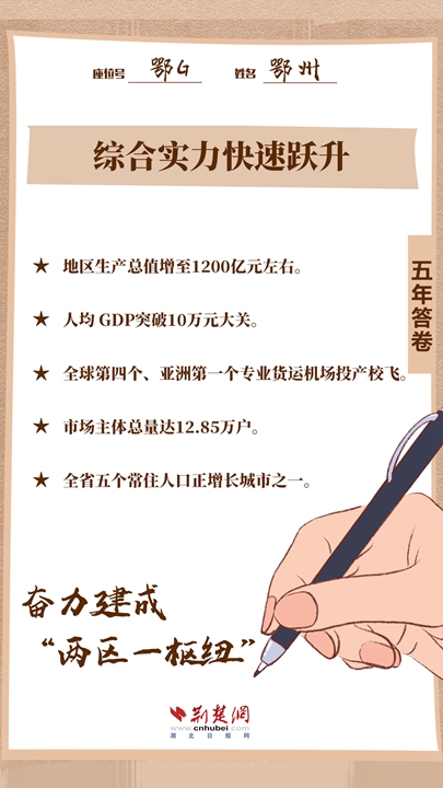 過去五年,鄂州全市上下勠力同心、接續(xù)奮斗、勇毅前行,準確地把握新發(fā)展階段,全面貫徹新發(fā)展理念,加快融入新發(fā)展格局,為人民“趕考”,交出了一張高水平、超預(yù)期的精彩“答卷”。