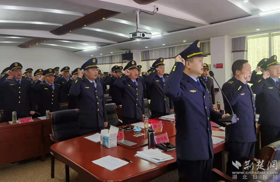 麻城市生態(tài)環(huán)境保護(hù)綜合執(zhí)法大隊(duì)現(xiàn)場宣誓 通訊員供圖
