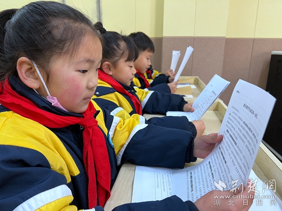 “身上著火不要跑,就地打滾壓火苗;若遇逃生路被堵,報(bào)警撥打119……”當(dāng)天上午9時(shí),鐵山區(qū)第三小學(xué)三年級(jí)1班的教室里傳來(lái)朗朗讀書(shū)聲,學(xué)生們?cè)凇八{(lán)老師”的帶領(lǐng)下,共同學(xué)習(xí)消防知識(shí)“順口溜”。