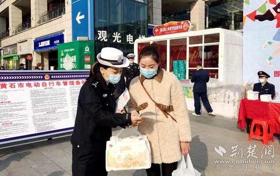荊楚網(wǎng)(湖北日?qǐng)?bào)網(wǎng))訊(通訊員胡賢鋒 李卓)“注意了,白底紅字臨時(shí)牌照的電動(dòng)自行車,2025年3月1日起不得上道路行駛。”2月26日,圍繞即將施行的《黃石市電動(dòng)自行車管理?xiàng)l例》,一場(chǎng)內(nèi)容豐富的宣傳活動(dòng)在黃石摩爾城廣場(chǎng)舉行。