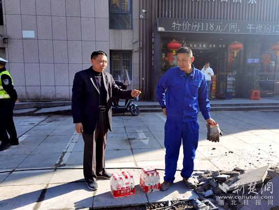 江南名居物業(yè)經(jīng)理見施工隊忙得熱火朝天,主動送來兩箱礦泉水,感謝他們的辛苦付出,他說:“為了居民的出行安全,你們辛苦了?!?/p>