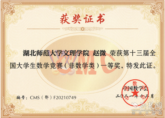 附:第十三屆全國大學生數(shù)學競賽湖北師范大學文理學院獲獎名單