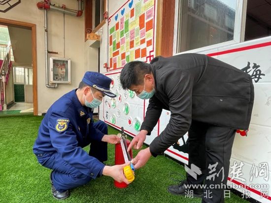 葛店消防救援大隊對葛華燃氣、黃磯幼兒園等多家單位消防產(chǎn)品進行抽樣檢查。通訊員供圖