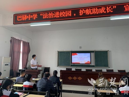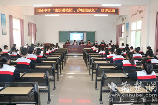 巴河鎮(zhèn)巴驛中學(xué)“法治進(jìn)校園 護(hù)航助成長”宣講活動(dòng)現(xiàn)場。通訊員 供圖