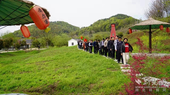 在希爾寨生態(tài)農(nóng)莊,大家饒有興致地觀看了獨具匠心的“同心林·石榴園”,正逢春天,草木蔓發(fā),生機(jī)盎然,此時的希爾寨生態(tài)農(nóng)莊儼然成為一片花的海洋,櫻花、桃花、紫荊花、海棠花、玉蘭花爭奇斗艷,競相開放,更有戀橋的別致、涵山堂的典雅、桃花島的悠然、九間堂的飄逸……自然景觀和人文景觀有機(jī)地融合在一起,別有一番韻味。人群中,頓時傳來了一句響亮的口號:花團(tuán)錦簇希爾寨、同心同行向未來!