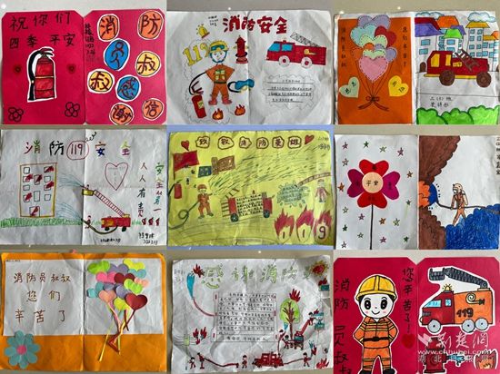 參觀結(jié)束后,可愛的孩子們?yōu)橄绬T帶來了精心準備的手寫賀卡、繪畫作品等特殊禮物,消防員叔叔們瞬間都被暖到了,整個營區(qū)沉浸在一片歡快的氛圍中。