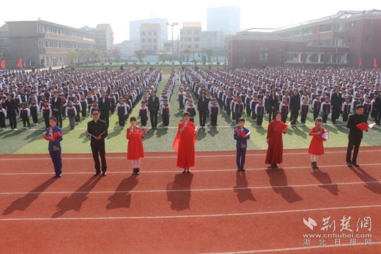 荊楚網(wǎng)(湖北日?qǐng)?bào)網(wǎng))訊(通訊員 陸登鋒)“今天,我們站在綠茵場(chǎng)上,揣著滿懷的激情,我們歌頌人民英雄的榮光,見(jiàn)證如他們所愿的夢(mèng)想……”3月31日,武穴市師范附屬小學(xué)江林校區(qū)運(yùn)動(dòng)場(chǎng)人頭攢動(dòng),熱鬧非凡。上千名學(xué)子排列成方陣,在教師的帶領(lǐng)下,慷鏘有力的誓言響徹云霄,“千人清廉誦”活動(dòng)在一片熱情洋溢的童聲中激情上演。