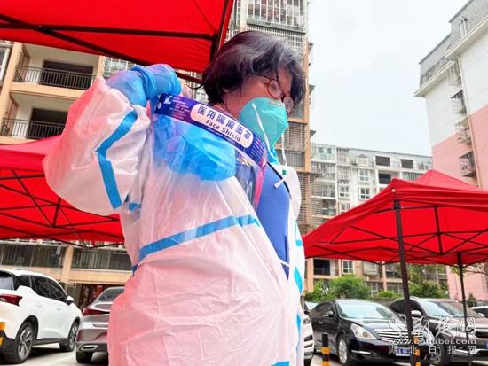 一天下來(lái),他的頭發(fā)濕了又干、干了又濕,防護(hù)服也是換了藍(lán)色做混檢,再換白色敲門(mén)采樣。其中的辛苦不言而喻,但他卻總是一聲不吭,默默做著自己手頭的事兒。同事的見(jiàn)狀,紛紛豎起大拇指,說(shuō)“好樣的”,但他只是微笑,便專心做事。