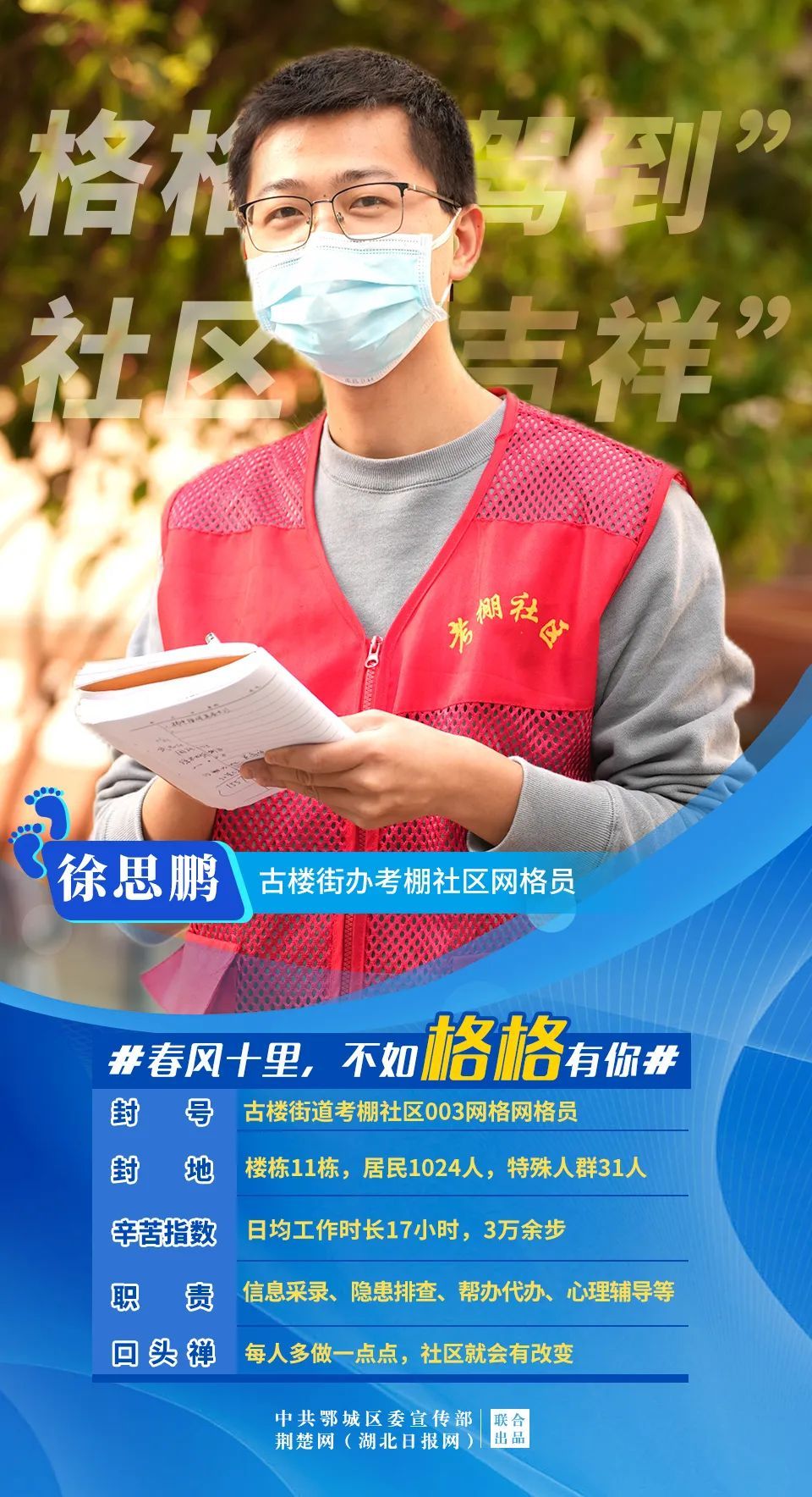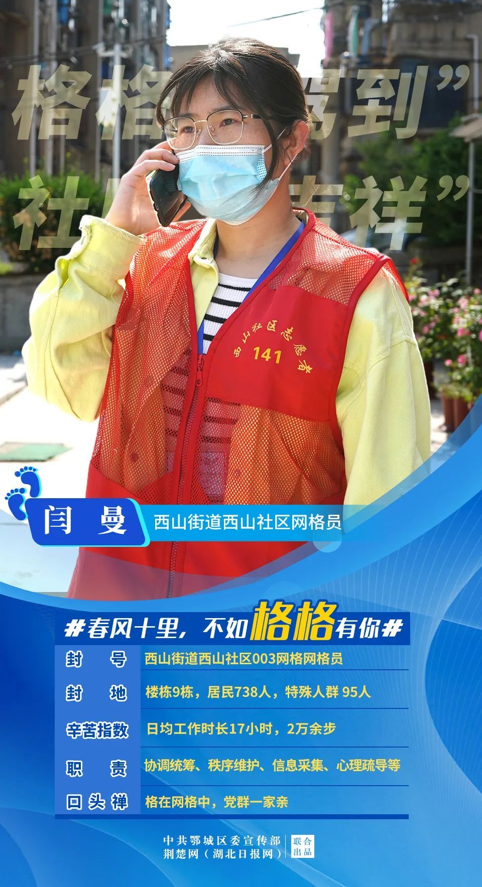 苔花如米小,也學(xué)牡丹開。發(fā)黑的眼圈,嘶啞的聲音,重繭的雙手,沉重的步伐……疫情發(fā)生以來,鄂城區(qū)4個(gè)街道33個(gè)社區(qū)的381名網(wǎng)格員,聞令而動(dòng)、聽令而行,宵衣旰食、不舍晝夜,揮灑熱血、綻放青春,一心抗疫、不勝不休。
