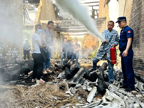在火災(zāi)警示課現(xiàn)場,消防宣傳人員組織居民走進(jìn)火災(zāi)事故現(xiàn)場,深入著火部位近距離感受火災(zāi)現(xiàn)場情況,體驗火災(zāi)事故的危險性、破壞性,并向村民們介紹了火災(zāi)發(fā)生時間、原因以及處置初期火災(zāi)方法、火場逃生方法。