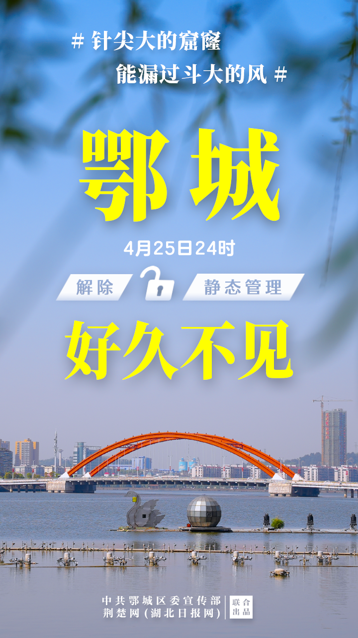 4月25日24時(shí)起,鄂州市鄂城區(qū)解除靜態(tài)管理,全區(qū)逐步有序恢復(fù)正常生產(chǎn)生活秩序。