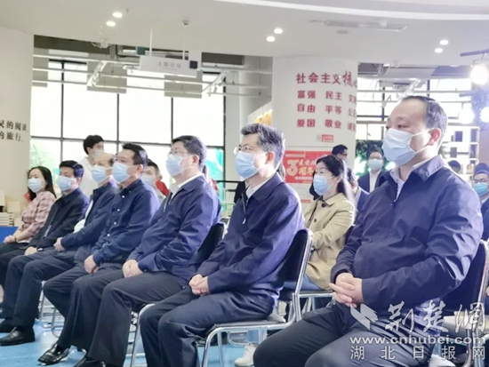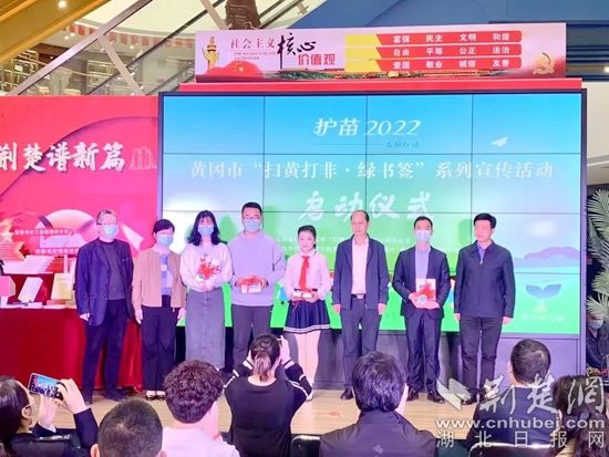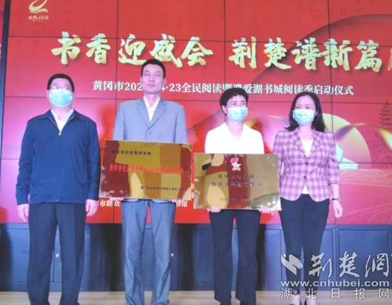 黃岡市、黃州區(qū)全民閱讀活動領導小組辦公室向遺愛湖書城授牌,向機關、企業(yè)、社區(qū)、學校代表現(xiàn)場派發(fā)2022年“綠書簽”。
