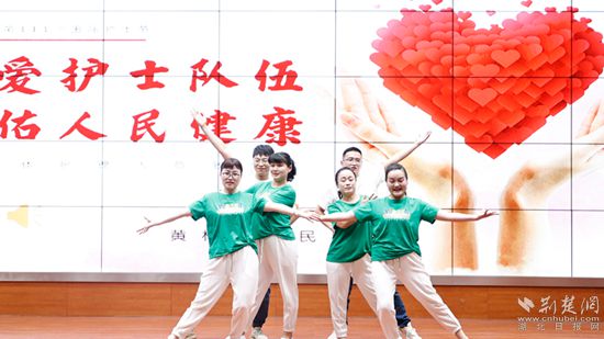 護理部白衣天使們表演節(jié)目《飛舞的雙翅》。通訊員 供圖
