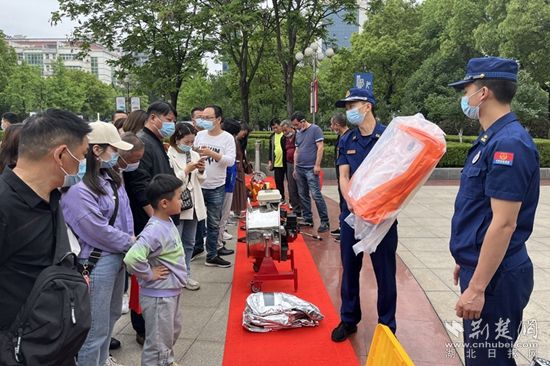 在器材裝備展示區(qū),消防員講解示范了消防特種器材及攻堅(jiān)技巧,吸引廣大市民駐足觀看,并參與互動(dòng)。