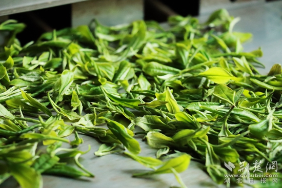 新鮮茶葉等待加工。金康 攝