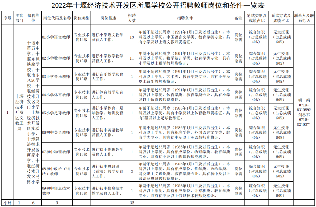 具體招聘事宜由十堰經濟技術開發(fā)區(qū)組織人事部、十堰經濟技術開發(fā)區(qū)文教衛(wèi)局負責解釋。