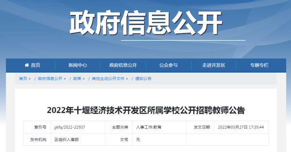 近日,十堰經濟技術開發(fā)區(qū)組織人事部發(fā)布公告十堰經濟技術開發(fā)區(qū)所屬學校擬面向社會公開招聘教師32名。