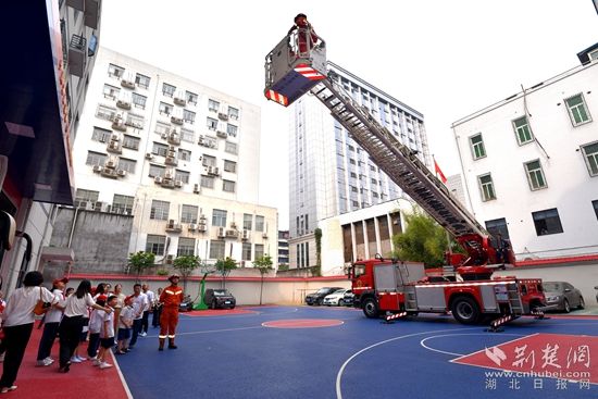 活動(dòng)中,消防員帶領(lǐng)來(lái)自黃石市廣場(chǎng)路小學(xué)的40余名學(xué)生和老師參觀了各類消防車輛和器材裝備,詳細(xì)介紹了不同車輛、器材的功能和用途。