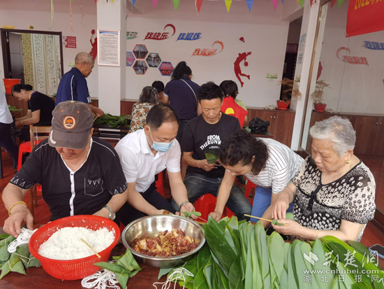 政協(xié)委員們正和社區(qū)居民朋友一起熱火朝天的邊聊著家常,邊包著粽子;有的不會(huì)的,社區(qū)的老人還手把手的教他們。這融洽的情景,分明描繪了一幅“不是一家人,勝是一家人”的濃濃親情圖。