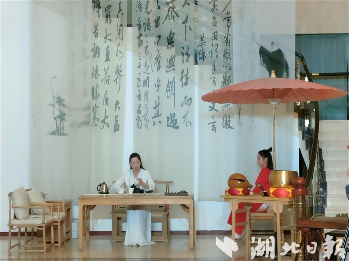 武當(dāng)茶道《風(fēng)雅頌》,現(xiàn)場(chǎng)展示了沖泡武當(dāng)?shù)啦璧募妓嚒0橹茡P(yáng)的樂(lè)曲,身穿傳統(tǒng)服裝的茶藝師用輕盈優(yōu)雅、大方嫻熟的手法為觀眾表演了武當(dāng)茶道,直觀呈現(xiàn)了武當(dāng)山道茶文化的博大精深,讓觀眾領(lǐng)略到武當(dāng)茶藝文化的魅力。