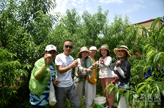 “我們這里地勢好、陽光充足,狗血桃成熟要早幾天。”盤茶村黨支部書記明安池介紹,該村種植狗血桃、黃桃等總面積有3200余畝,幾乎家家戶戶都種植狗血桃,達到了見縫栽桃的程度。