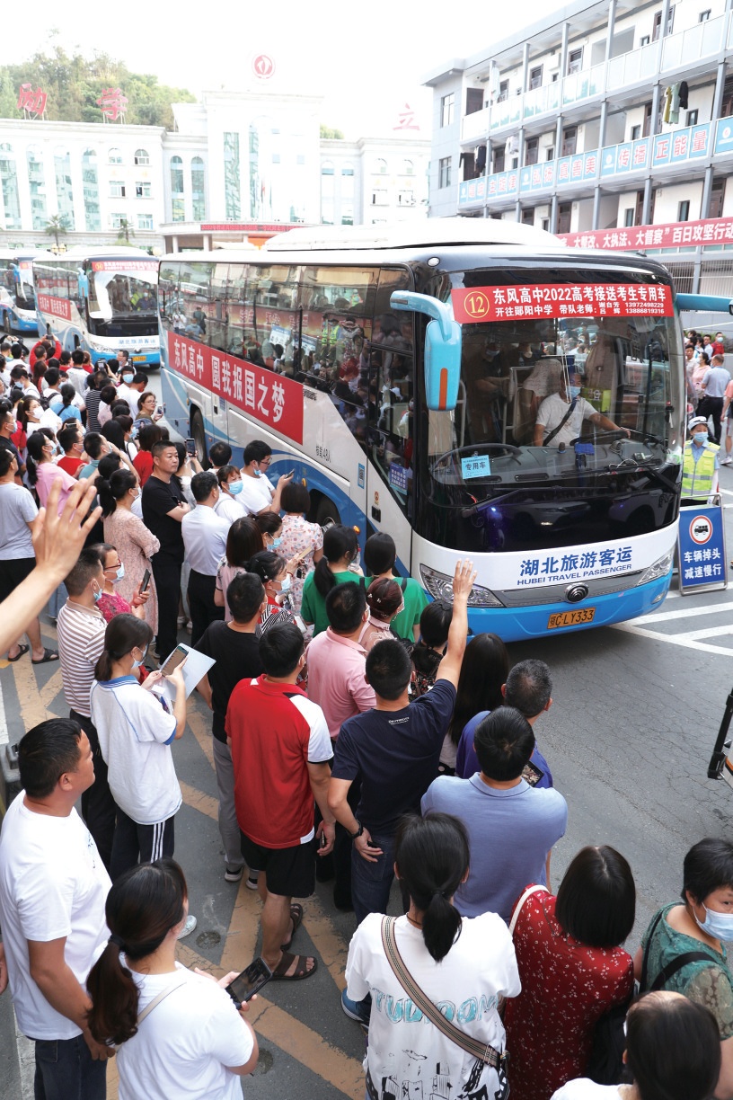 東風(fēng)高中的“少年戰(zhàn)士”踏上高考的征程。車身上的標(biāo)語“圓我報(bào)國之夢(mèng)”為孩子們的夢(mèng)想做了最好注解。