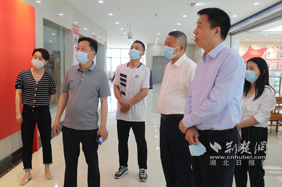 陽新縣委書記萬鼎(右二)調研陽新圖書館。通訊員 供圖