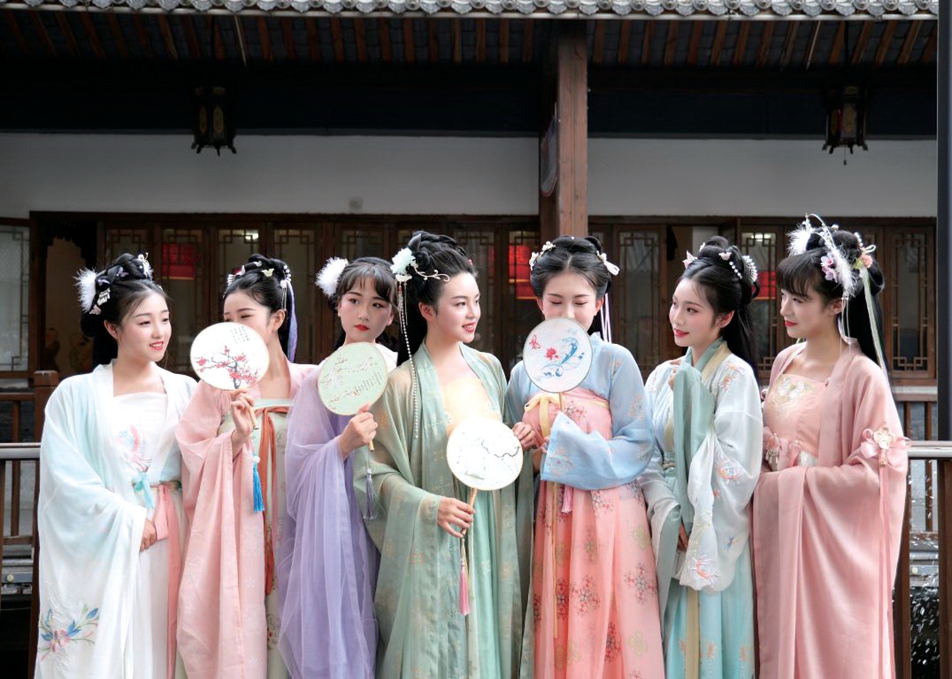 “仲夏苦夜短,開(kāi)軒納微涼。姐妹們,如此炎熱,我們?yōu)槭裁匆竭@里來(lái)呀?”婉轉(zhuǎn)的聲音從遠(yuǎn)處傳來(lái),回首望去,七位顧盼生輝的美人站在橋上相談甚歡。晚報(bào)“七仙女”帶大家打卡朝鳳莊園,直播正式開(kāi)始,小橋、烏篷船、露臺(tái),每一處都有仙女們飄然的身影,她們或坐或站,伴隨著水塘里的霧氣,真像是從天上下凡,正在吃飯的食客都放下了筷子欣賞。