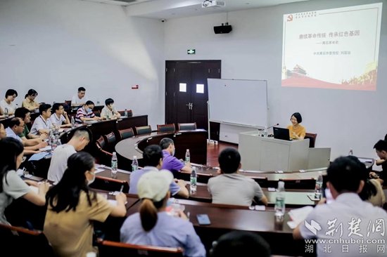 活動現(xiàn)場,采取現(xiàn)場教學和理論教學相結(jié)合的形式?,F(xiàn)場教學環(huán)節(jié),組織學員參觀全國文物保護單位——“大冶兵暴舊址”、全國紅色美麗鄉(xiāng)村示范村——大箕鋪鎮(zhèn)曹家晚村鄂東南第一個農(nóng)村黨支部舊址。理論教學環(huán)節(jié),為學員發(fā)放紅色書籍等學習資料,邀請市委黨校二級調(diào)研員劉國容、市委政研室科長夏毓分別作出題為《賡續(xù)革命傳統(tǒng)、傳承紅色基因》《黃石高質(zhì)量發(fā)展歷程和戰(zhàn)略》的輔導報告。