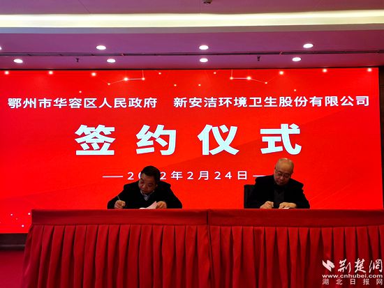 華容區(qū)政府與新安潔環(huán)境衛(wèi)生股份有限公司簽約現(xiàn)場(chǎng)(資料圖)。通訊員 供圖