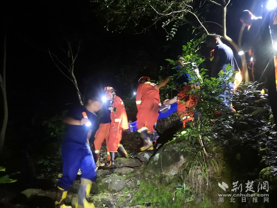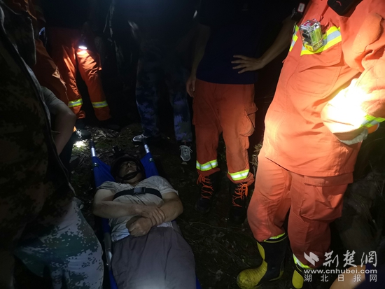 救援人員為老人做好防護后,采取托舉、肩抬等方法,耗時約3個小時,將老人抬下山交由現(xiàn)場等候的醫(yī)護人員送往醫(yī)院進行治療。