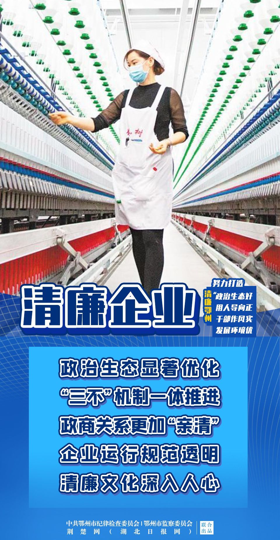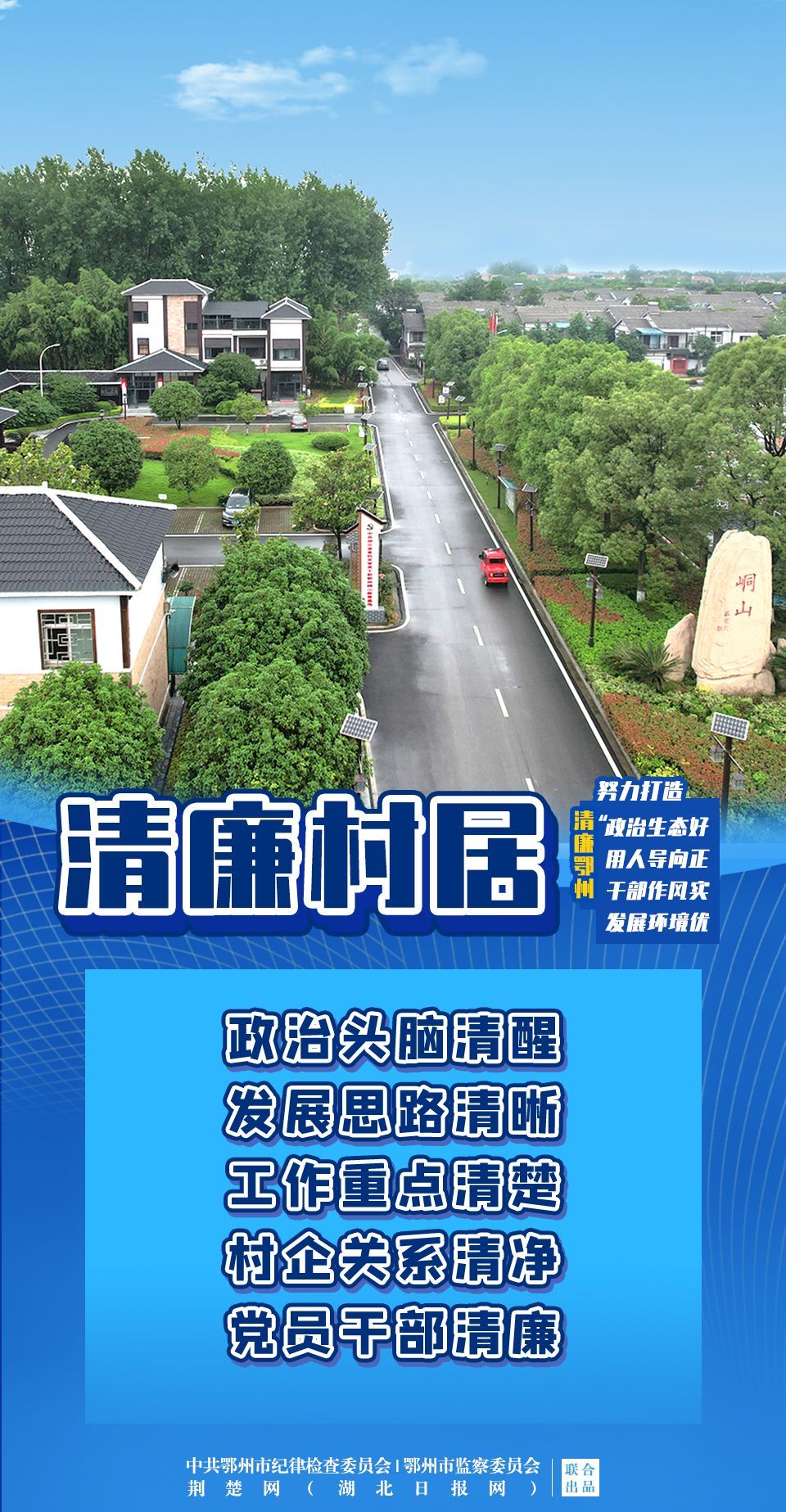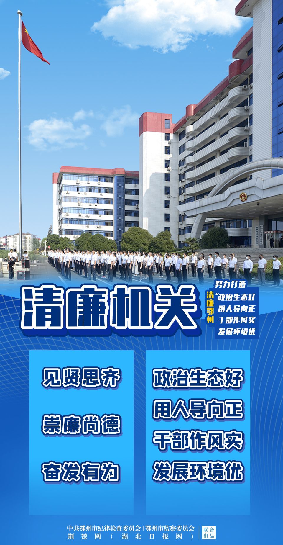 今年以來,鄂州市結(jié)合實(shí)際,從建設(shè)清廉機(jī)關(guān)、清廉企業(yè)、清廉學(xué)校、清廉醫(yī)院、清廉村居、清廉家庭、清廉文化7個方面做出部署,引導(dǎo)全社會崇廉尚廉,努力打造“政治生態(tài)好、用人導(dǎo)向正、干部作風(fēng)實(shí)、發(fā)展環(huán)境優(yōu)”的清廉鄂州,為鄂州加快建成“兩區(qū)一樞紐”賦能添彩,為黨的二十大勝利召開營造風(fēng)清氣正、正氣充盈的政治生態(tài)和社會風(fēng)氣。